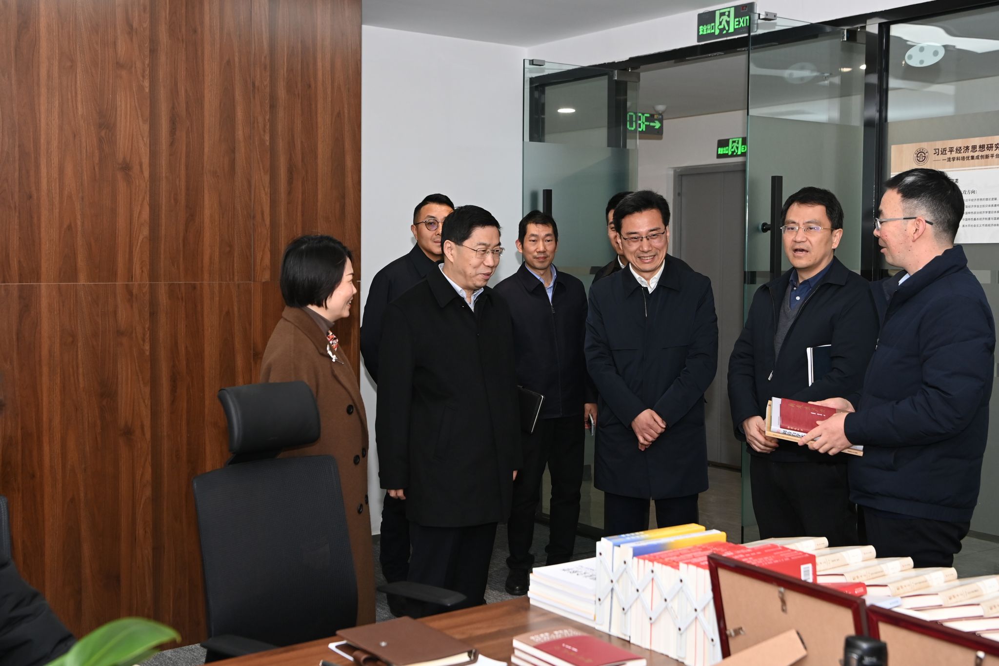 在習(xí)近平經(jīng)濟(jì)思想研究院,趙建軍深入團(tuán)隊(duì)辦公室,詳細(xì)了解各研究團(tuán)隊(duì)的研究方向、研究進(jìn)展、隊(duì)伍建設(shè)、研究成果及其面臨的問(wèn)題困難,重點(diǎn)聽(tīng)取服務(wù)國(guó)家戰(zhàn)略和地方經(jīng)濟(jì)社會(huì)發(fā)展的情況。趙建軍強(qiáng)調(diào),要增強(qiáng)政治自覺(jué),深學(xué)篤行習(xí)近平經(jīng)濟(jì)思想,自覺(jué)從習(xí)近平總書記重要講話中找研究課題、立研究項(xiàng)目,推進(jìn)習(xí)近平經(jīng)濟(jì)思想學(xué)理化闡釋。要服務(wù)“國(guó)之大者”,牢牢把握國(guó)家重大戰(zhàn)略需求和區(qū)域行業(yè)需求,充分發(fā)揮智庫(kù)作用,積極為國(guó)家發(fā)展建言獻(xiàn)策、貢獻(xiàn)力量。要堅(jiān)持問(wèn)題導(dǎo)向,緊盯中國(guó)式現(xiàn)代化進(jìn)程中的重大理論和實(shí)踐問(wèn)題,進(jìn)一步凝練研究方向。要加強(qiáng)對(duì)外宣介,及時(shí)宣傳推廣最新研究成果,發(fā)出“西財(cái)聲音”,不斷提升學(xué)校學(xué)科聲譽(yù)和學(xué)術(shù)影響力。