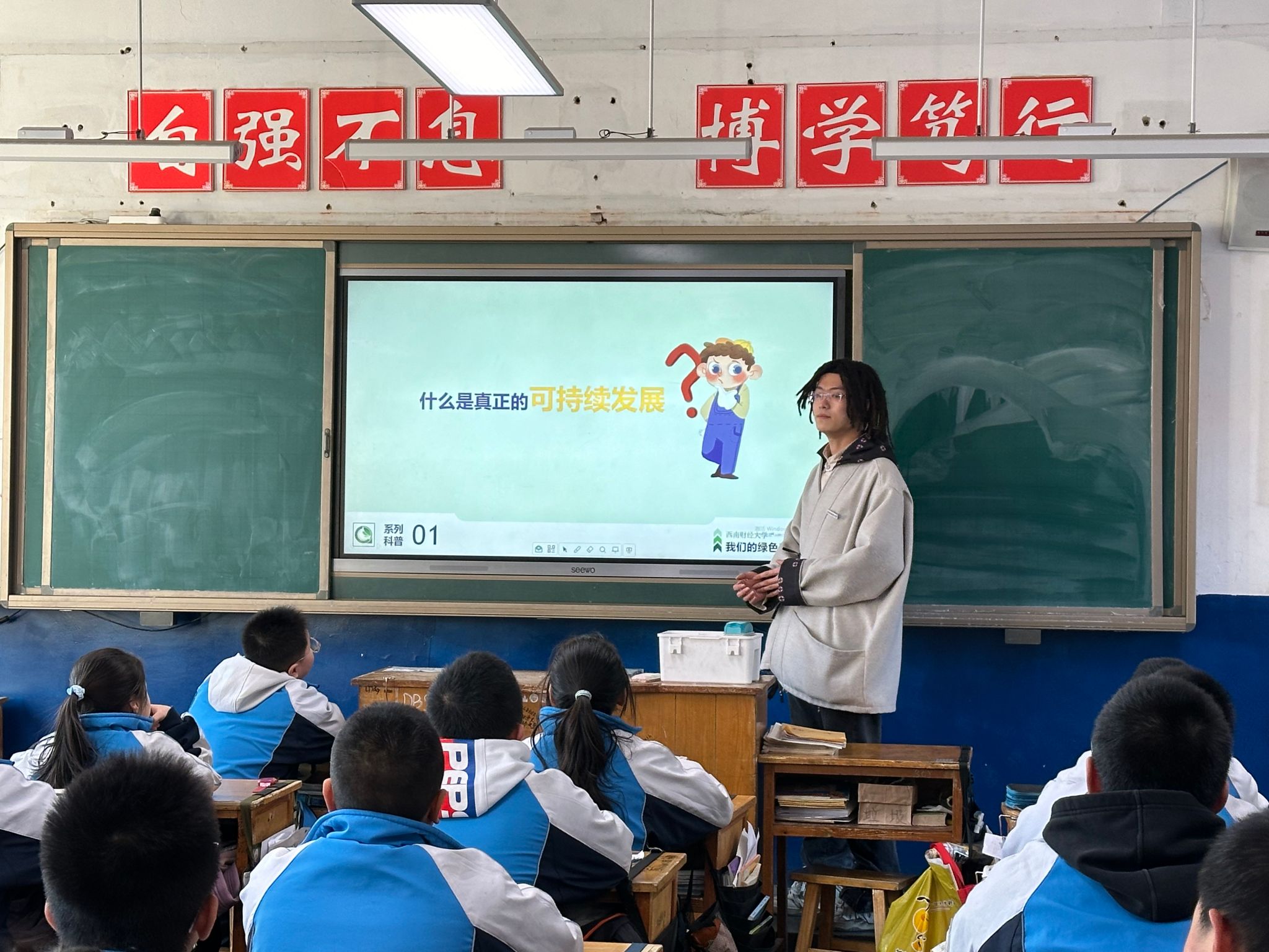 外國語學(xué)院“山河”實(shí)踐隊(duì)前往山西省晉城市成莊學(xué)校,將貼時(shí)事、富趣味的原創(chuàng)“雙碳”科普故事講給青少年兒童聽,幫助同學(xué)們深刻體悟綠色經(jīng)濟(jì)發(fā)展模式的價(jià)值內(nèi)涵,體會踐行低碳生活理念,保護(hù)地球環(huán)境的重要性。